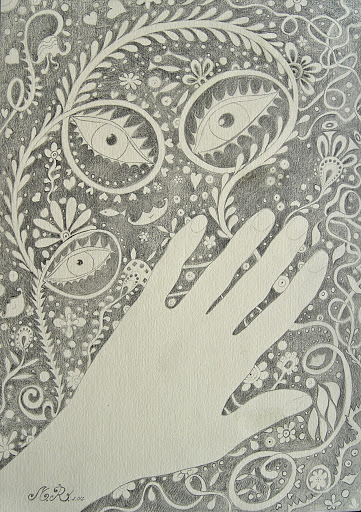Hello, I don’t know how, but one day I began to draw my hand with a lot of magic elements. It was really amazing and funny and a way to learn on my own. For me is very very important to enjoy the beauty in my life and I trie to live with it.