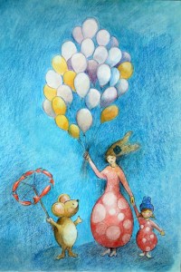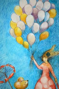 When I start drawing I have rarely clear where I will get is a simple line that I will slowly inspiring to paint the scene. On this occasion, the balloons which led me to the end and a combination of watercolors and colored pencils.