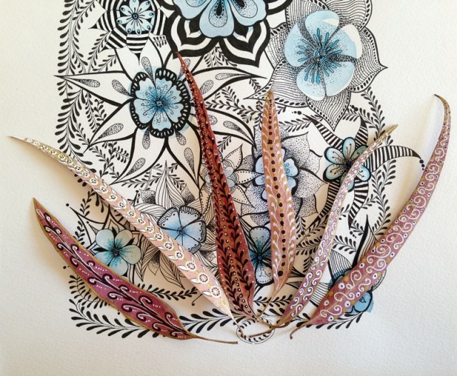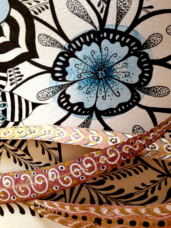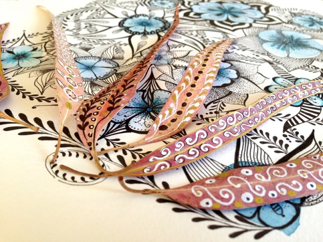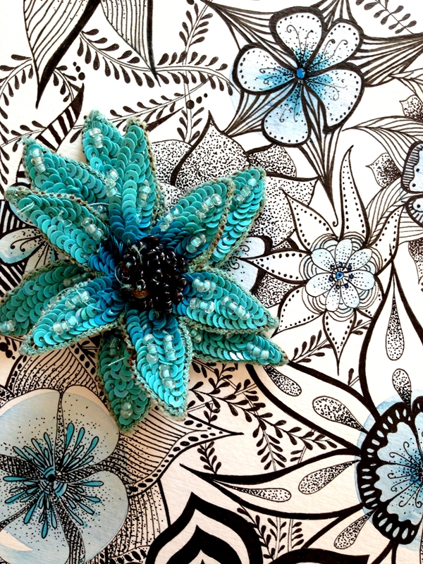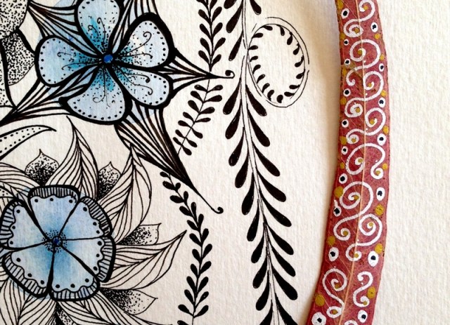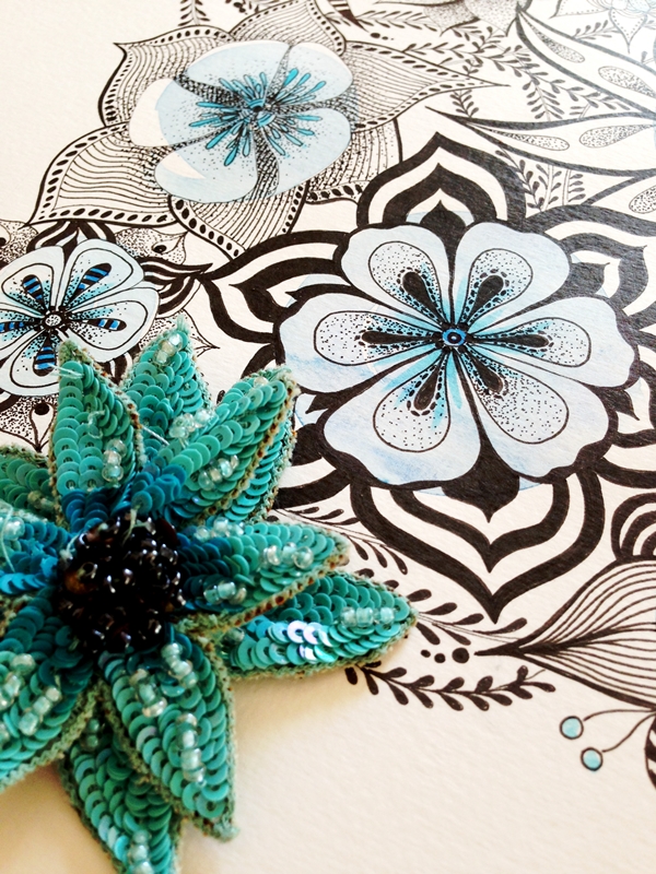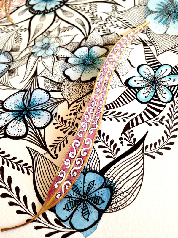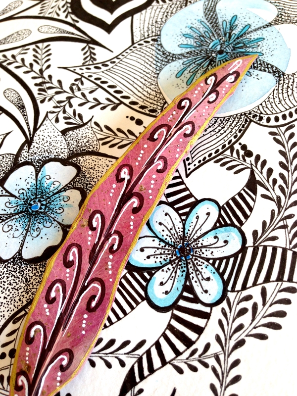 Cuando una está inspirada que bien se pasa. Me ha llegado el subidón creativo y he empezado a hacer fotos con mi cámara y no ha habido qjuien me parara. He combinado una ilustración de tinta negra y acuarela con diferentes complementos, hojas, flores y creo que la combinación queda preciosa y elegante.