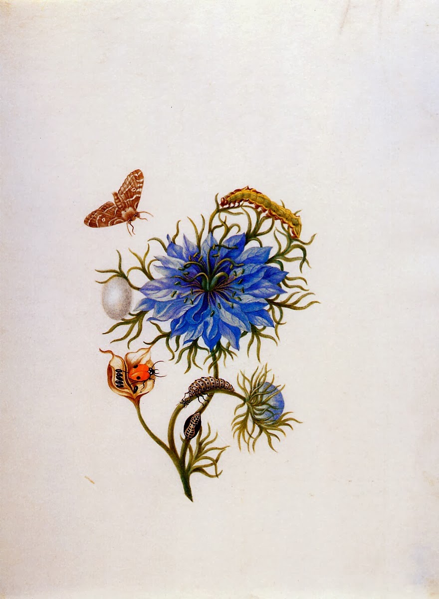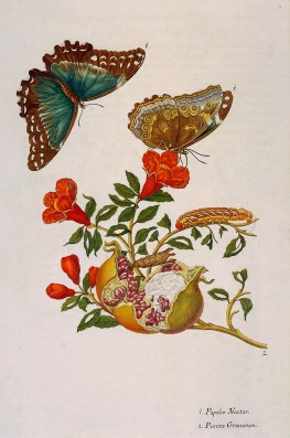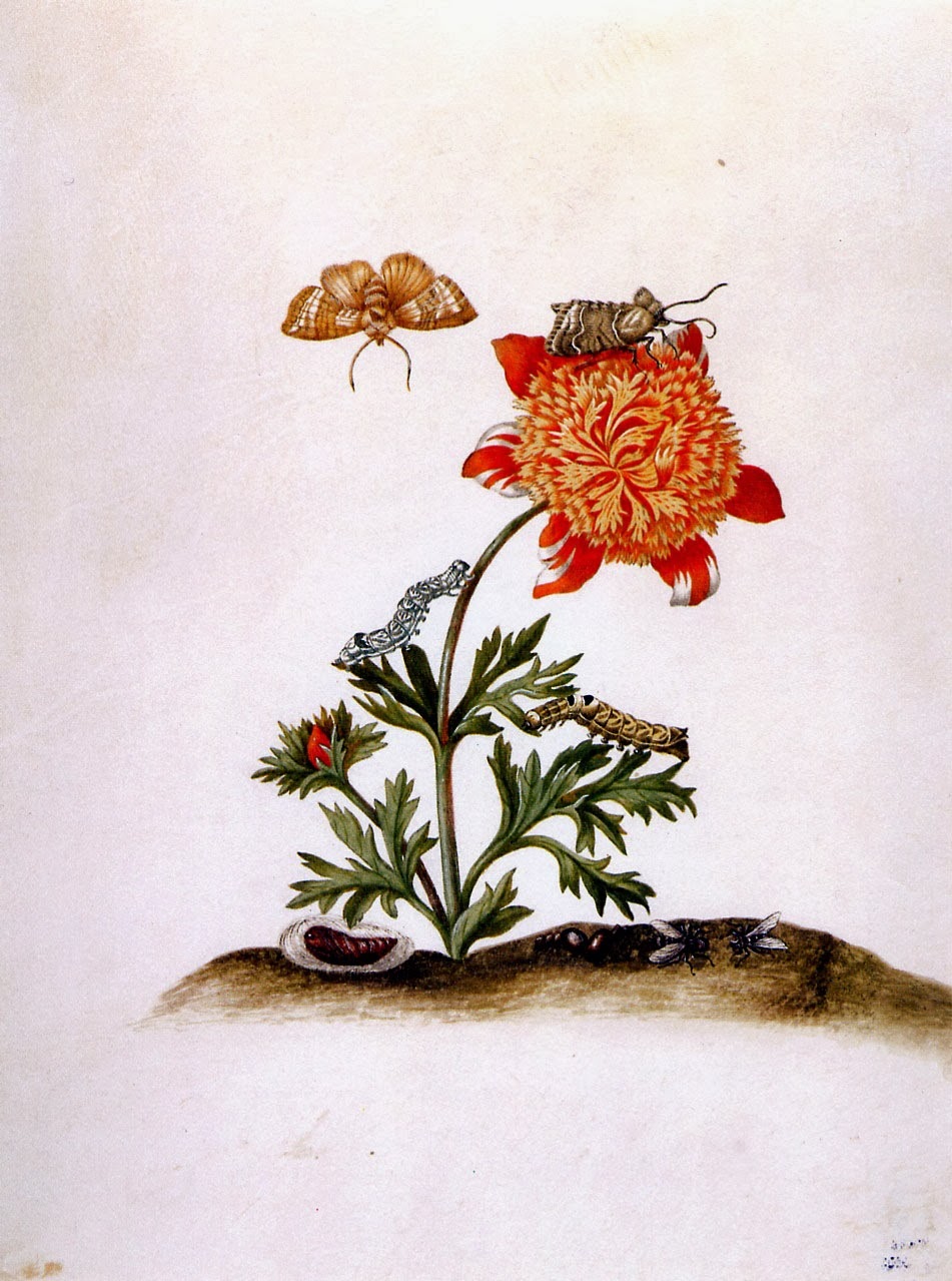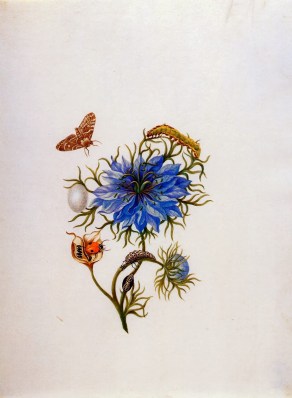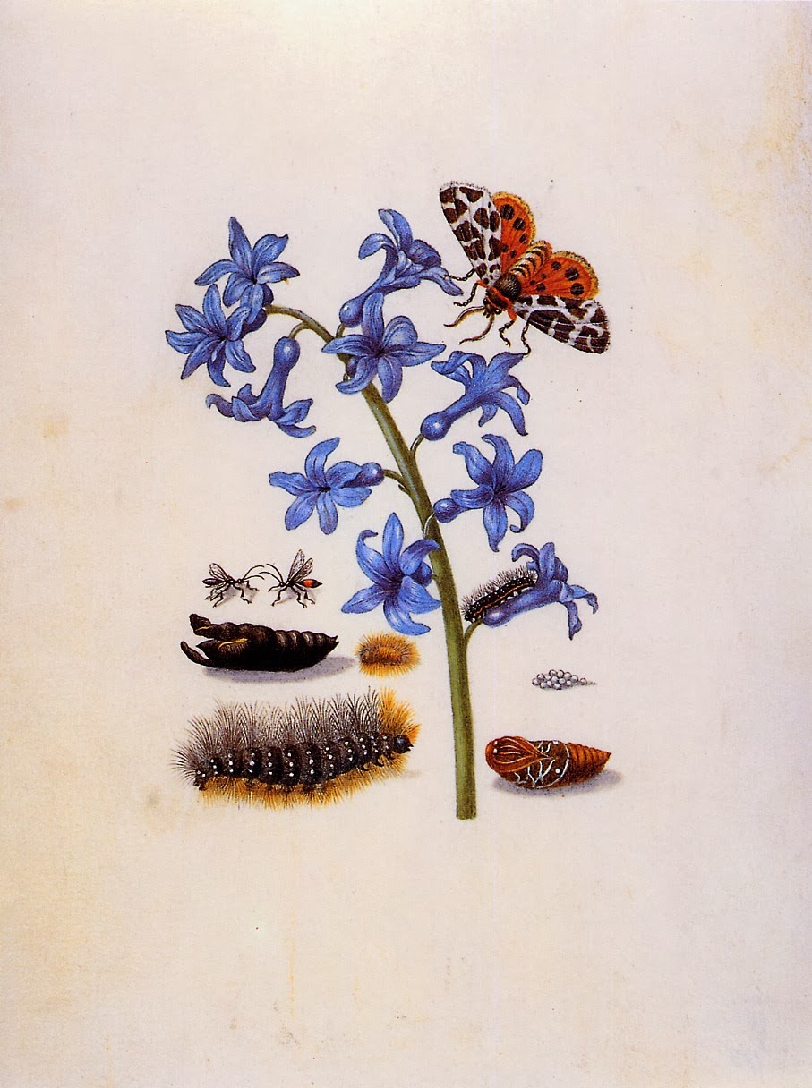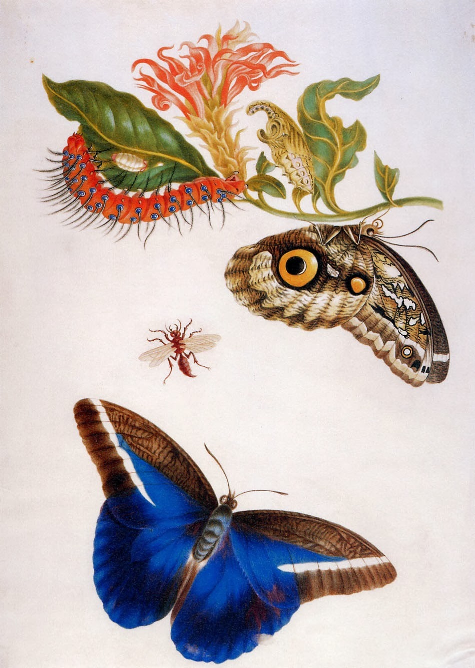 El trabajo de esta ilustradora alemana es impresionante y una fuente de inspiración para mi extraordinaria. En su época era realmente raro que alguien se interesara en los insectos. La metamorfosis de los animales era casi desconocida. El hecho que ella publicara La oruga, maravillosa transformación y extraña alimentación floral la hizo popular en la alta sociedad. Por esa misma razón, era rehuida por los científicos de su tiempo, ya que la lengua oficial para la ciencia era el latín. Paralelamente a la metamorfosis, Maria Sibylla Merian describió también muchos otros detalles de la evolución y vida de los insectos. Este trabajo hizo de ella una de las primeras naturalistas que observó realmente los insectos, lo que le permitió descubrir muchas cosas sobre su desarrollo.