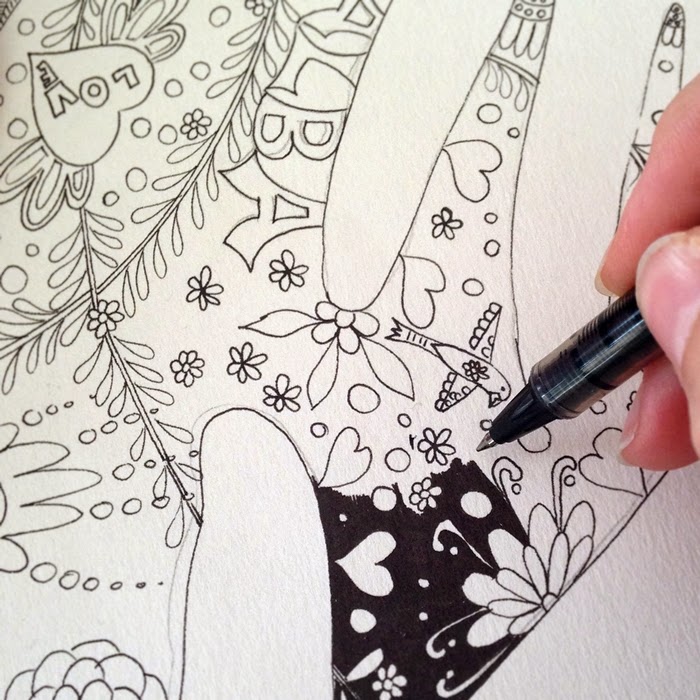 Esta semana he retomado un dibujo que tenía aparcado desde hace algunos meses y que quería acabar ya de una vez. Es una ilustración en la que quedan plasmadas las manos izquierdas de mi madre,70 años, y mi hija pequeña, 14 años. La enfermedad de mi madre sigue avanzando y gestos que habitualmente se hacen sin darse cuenta para ella supone un imposible y hay que ayudarla en todo. esta ilustración es una visión alegre y optimista de la relación entre una nieta y su abuela. Quiero que Alba tenga esta ilustración para que tenga un recuerdo bonito de su abuela el día que ya no esté.
