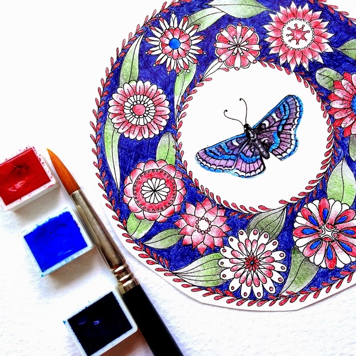 Durante este verano he pasado muchas horas muertas en aeropuertos y que mejor manera de pasar el rato y no aburrirme que dibujar mis mandalas, con mis bolígrafos y mis rotuladores.