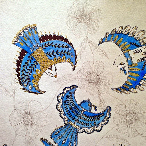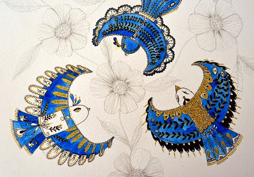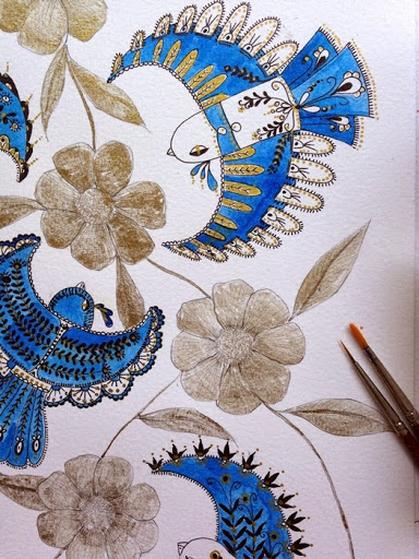 BLUE BIRDS Publicado el 10 octubre, 20146 febrero, 2017 por Victoria Vivancos LO HE PASADO REALMENTE ESTUPENDO CON ESTA ILUSTRACIÓN. LO QUE EMPEZÓ SIENDO UN GARABATO EN UN PAPEL DE MI ESTUDIO, SE HA CONVERTIDO EN UN DIBUJO PRECIOSOS Y MUY ALEGRE. LO TRABAJÉ CON ACUARELAS AZULES Y DORADAS Y TINTA NEGRA. ESPERO QUE OS GUSTE. Compártelo: Compartir en X (Se abre en una ventana nueva) X Compartir en Facebook (Se abre en una ventana nueva) Facebook Me gusta Cargando...