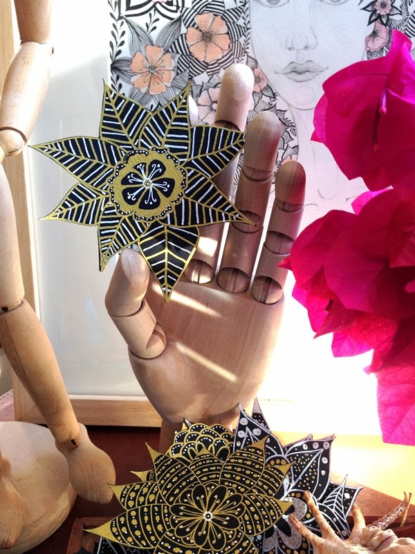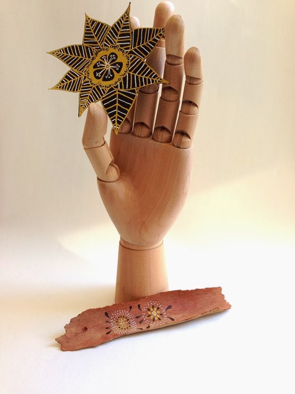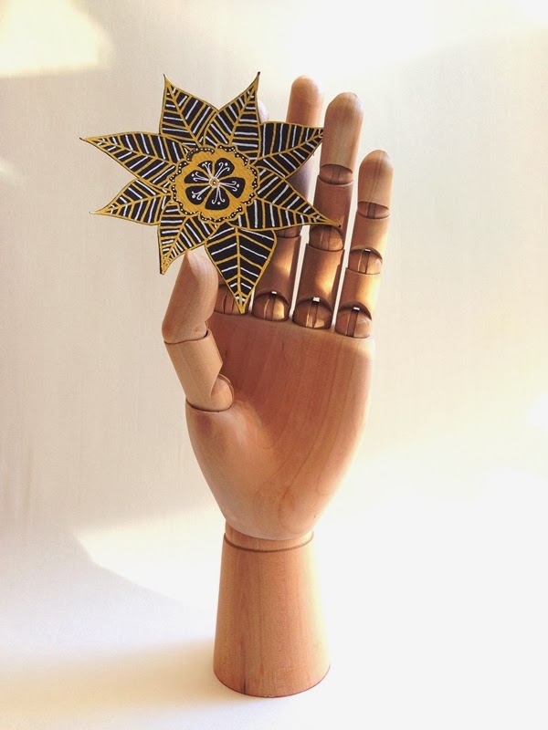 I’ve combined the hand with some of my tesoritos, trimmed and painted flowers that I did with my daughter on a summer’s evening.