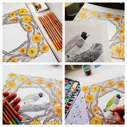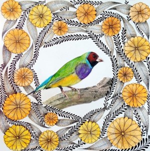 BIRD WITH YELLOW FLOWERS Publicado el 12 febrero, 201427 enero, 2017 por Victoria Vivancos2 comentarios Lo he pasado fantástico pintando este pájaro multicolor Lady gouldian finch.