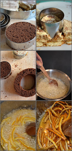 Esta combinación hacía tiempo que la tenía en mente. Es que el chocolate y la naranja me encanta lo bien que combinan y como tenía preparado un par de pasteles, de chocolate y un tiramisú pues me decidí a realizarlo.